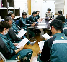 日々の朝礼に加え、月1回の安全会議(災害防止協議会)を行い、事故の防止に努めています。
